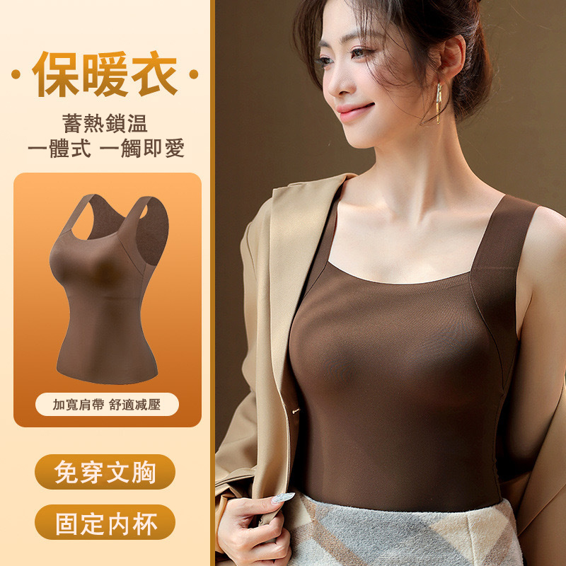 新品秋冬款雲朵無痕潤膚裸感肌底衣保暖背心女固定杯美膚打底秋衣